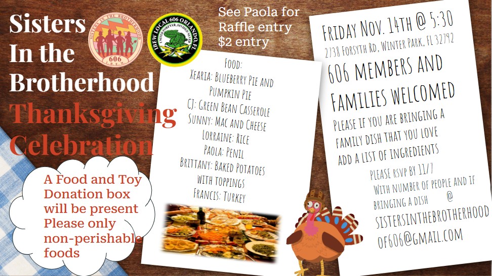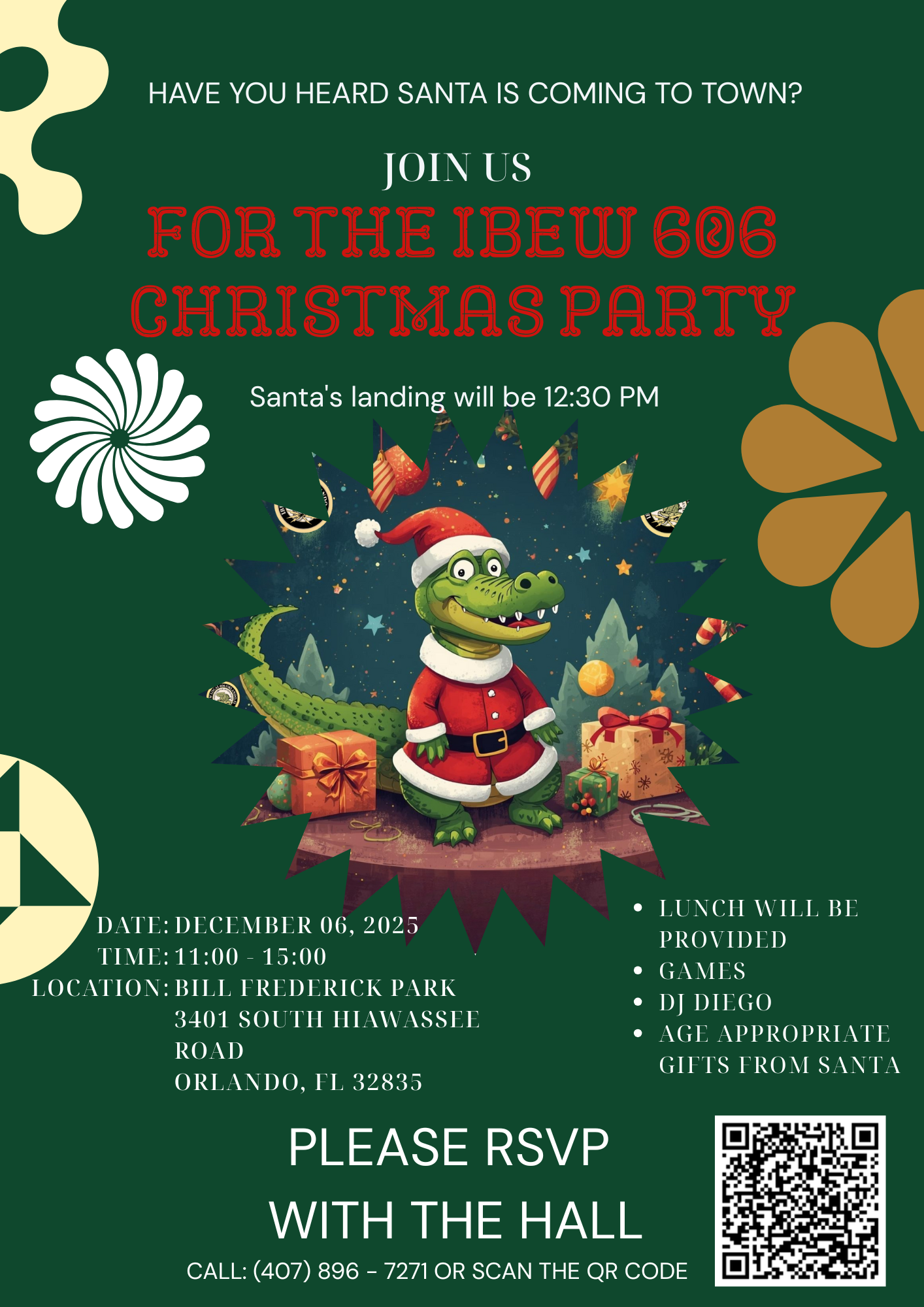 Brothers and Sisters Please join us at Bill Frederick Park at Turkey Lake for Local 606's Christmas Celebration. Read More...